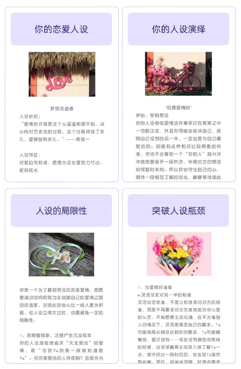 壹心理测评团队集体研发出「恋爱人设测试」,将:
