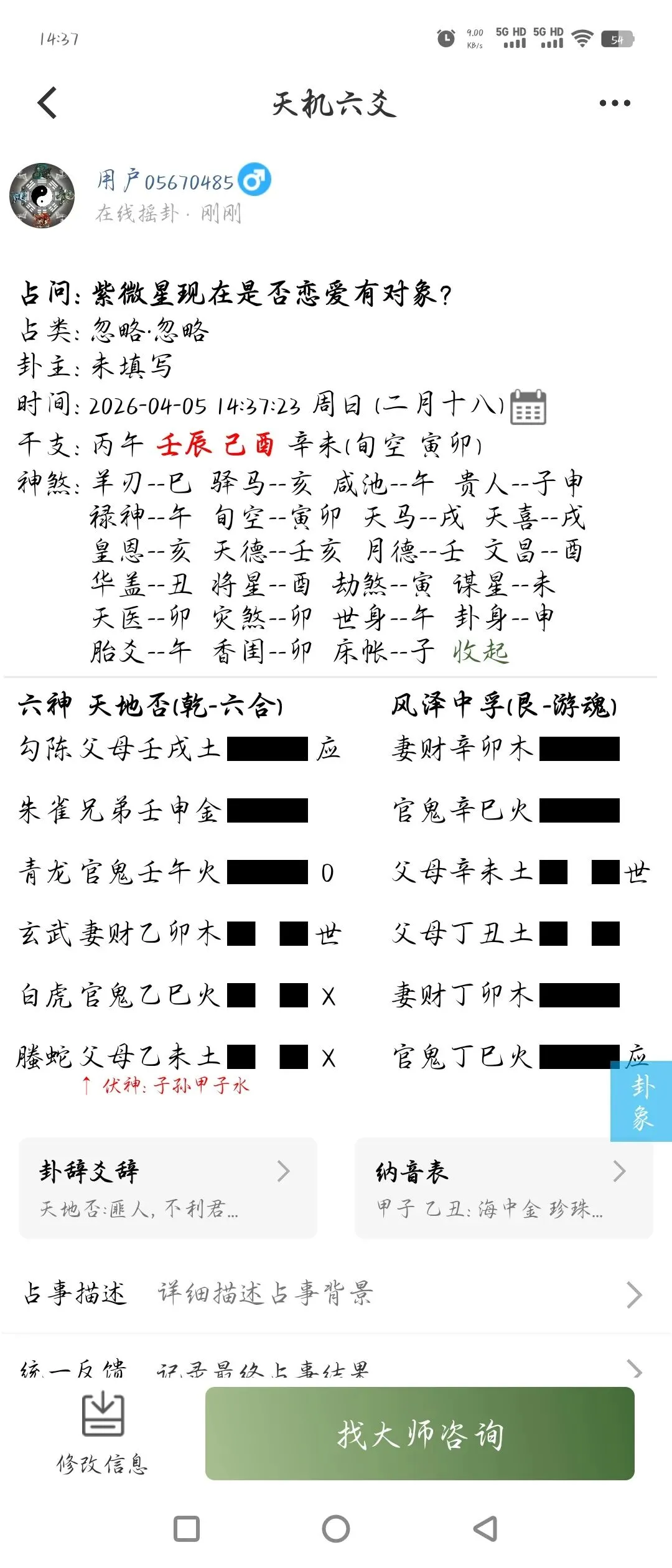 紫哥现在是否恋爱,以妻财爻为用神。