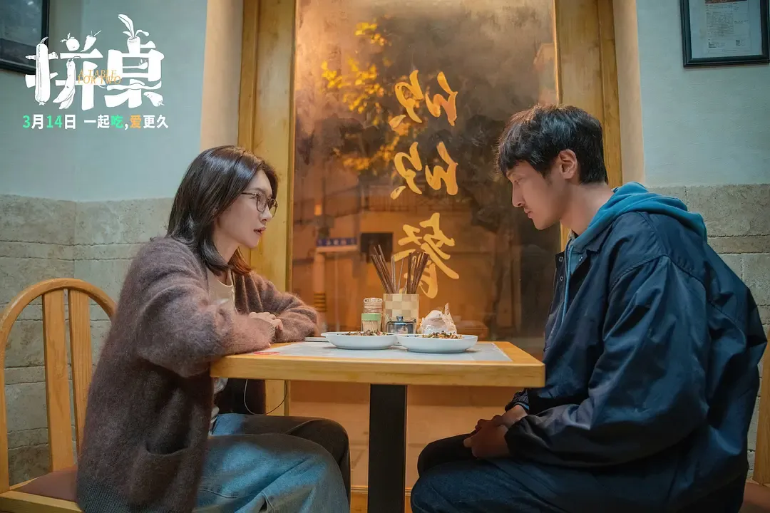 导演想拍"低负担亲密关系",结果把负担减没了,把亲密也减没了。两个主角从饭搭子到暧昧对象的情感递进,像是被按了0.5倍速播放,看得人忍不住想快进。可《拼桌》把这一层磨掉了,于是人物关系虽然顺滑,却也少了一点真实的人味。