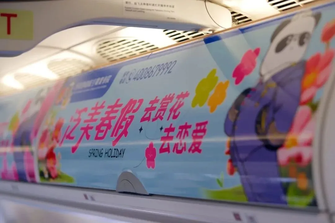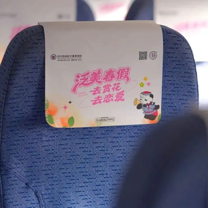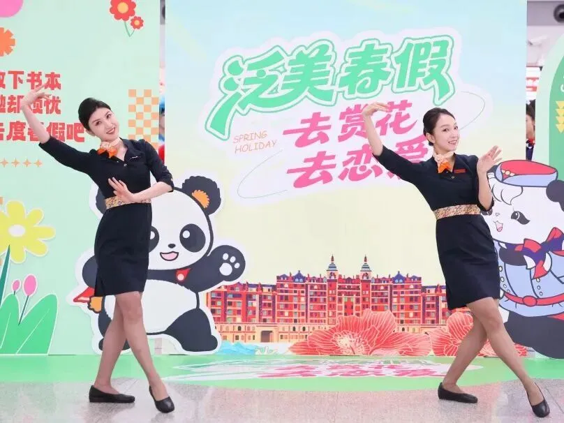 机身涂装融合熊猫与哪吒元素的“熊非熊”IP,客舱主题为“去赏花·去恋爱”,通过快闪、主题互动等活动传递春假理念。