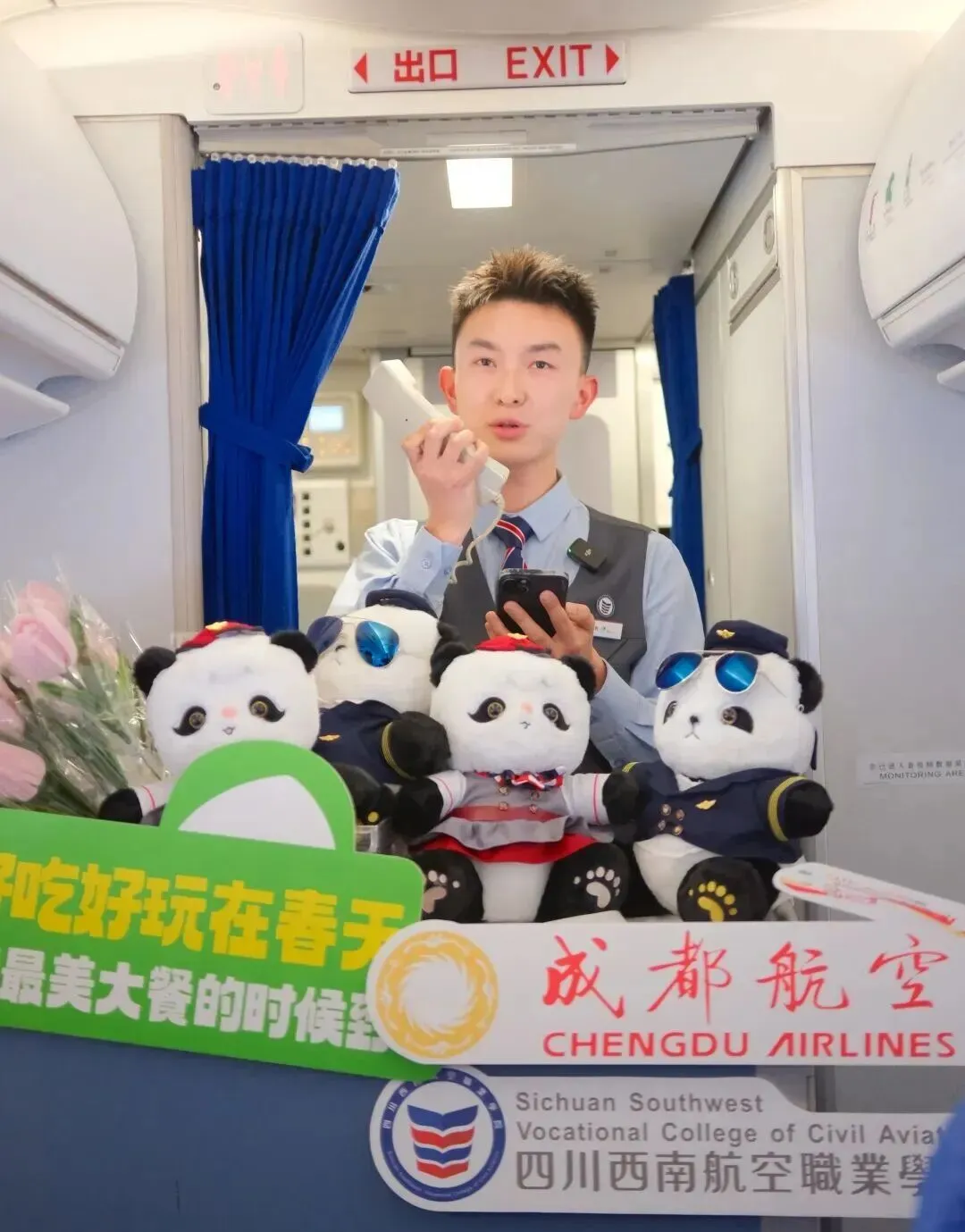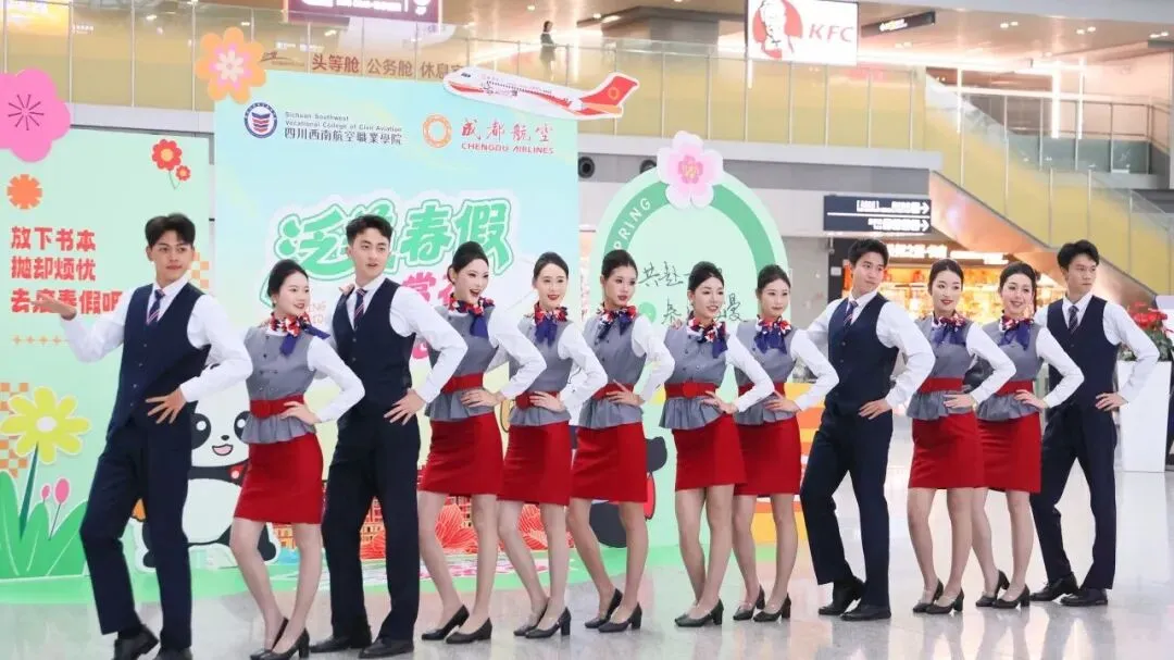 航班还搭载了西南航院毕业的乘务员,实现校企联动。