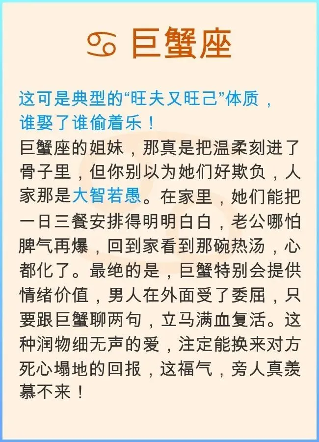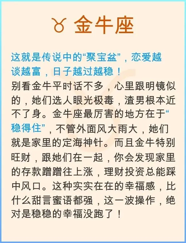 咱就说,这年头谈个恋爱,怎么就那么难?打开手机全是情感纠纷,看得人心里直发慌。好多姐妹都在后台问我:“是不是好男人都绝种了?”其实真不是!有些人就是天生带福气,恋爱谈得那叫一个顺风顺水,好像老天爷专门给她们开了后门似的。别不信,有些星座的恋爱运势,那就是妥妥的“人生赢家”剧本,不管跟谁在一起,最后都能把日子过成蜜里调油,不得不服!