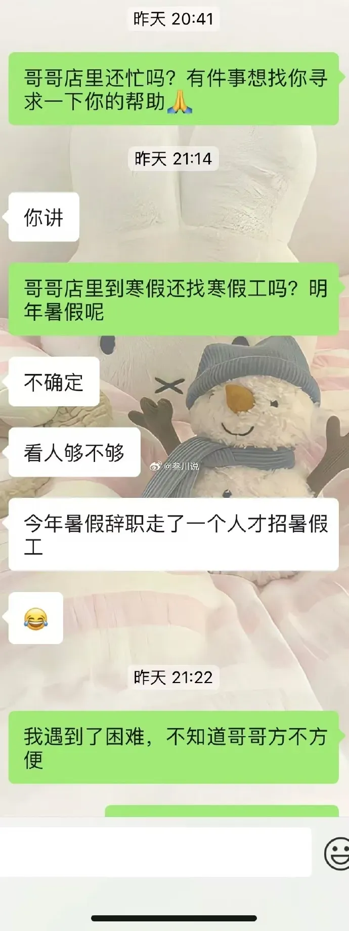寒假工老板比我大十岁,离过婚,有个女儿。我之前在他店里打工,还会帮他带孩子,关系一直不算差,他平时也挺照顾人的,所以我才会去找他借钱。