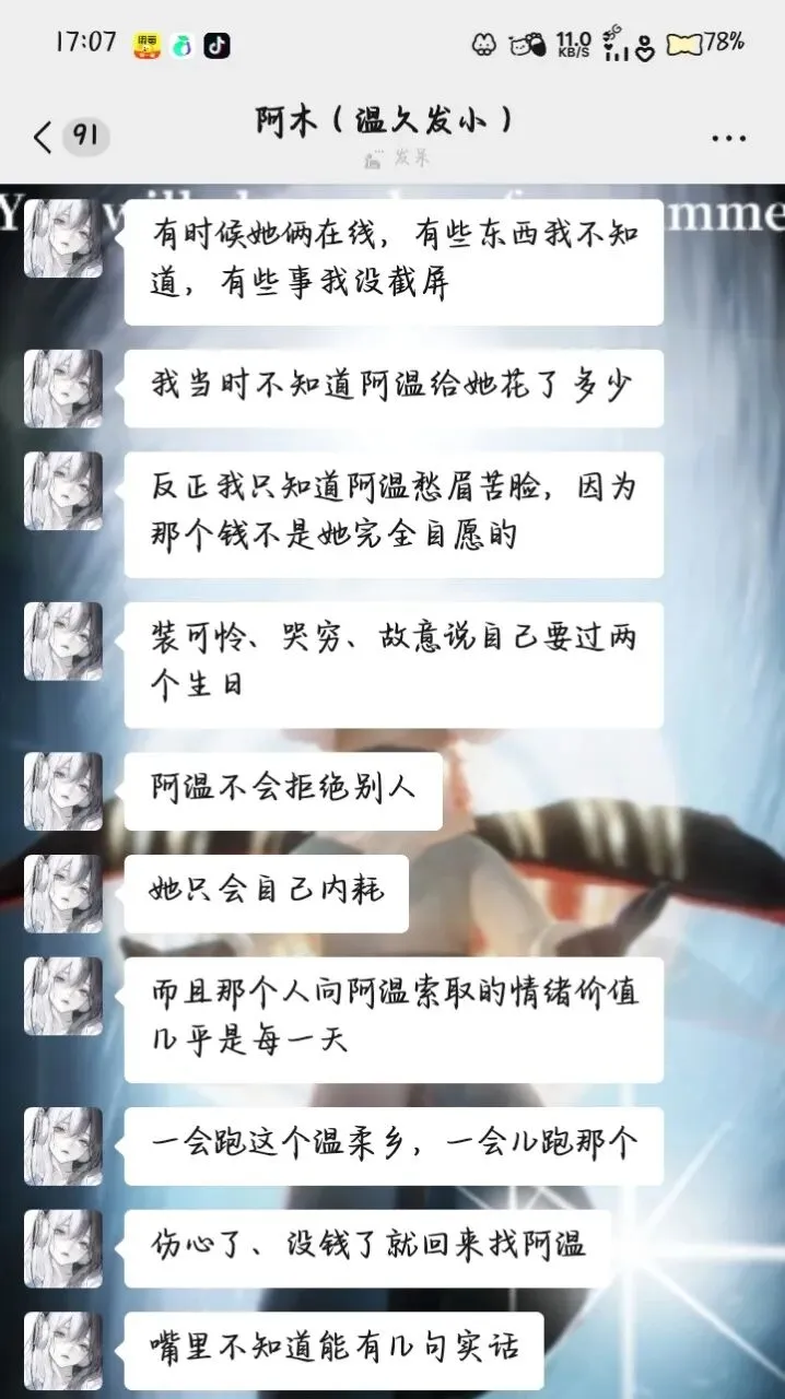 瓜主同温久暧昧,圈钱,因为温久身体不适,以阿木视角阐述,请看截图