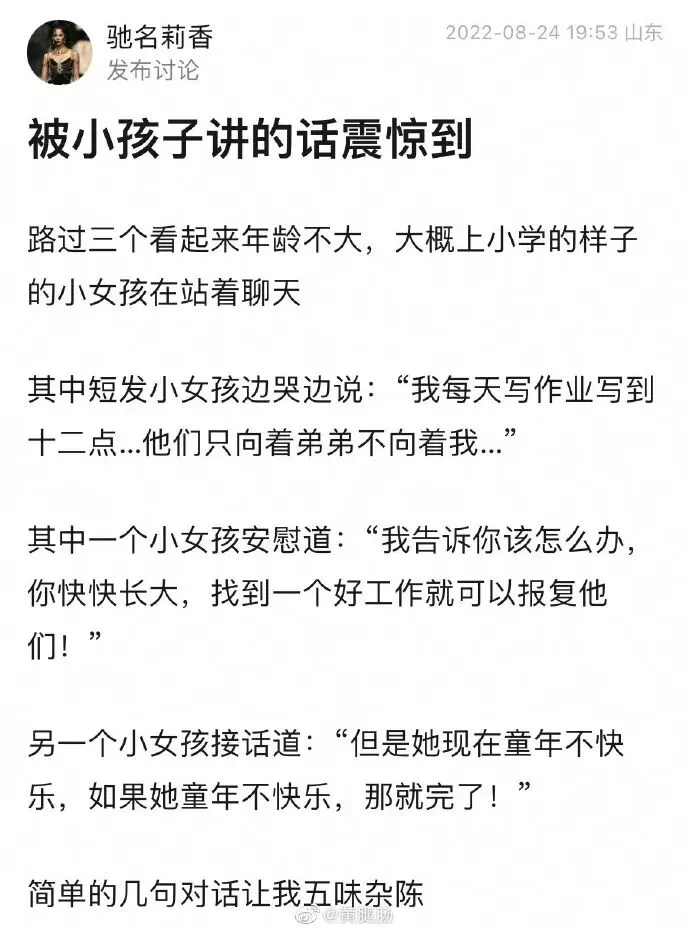 “但是她现在童年不快乐,如果她童年不快乐,那就完了!”@Rebellions