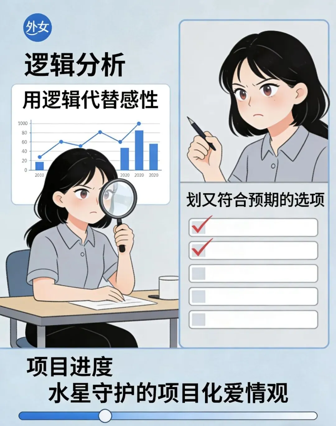 极致审视恋爱细节,对方稍有不符合预期便果断止损。水星守护的处女将爱情视为可优化的项目,用逻辑代替感性,避免陷入盲目。
