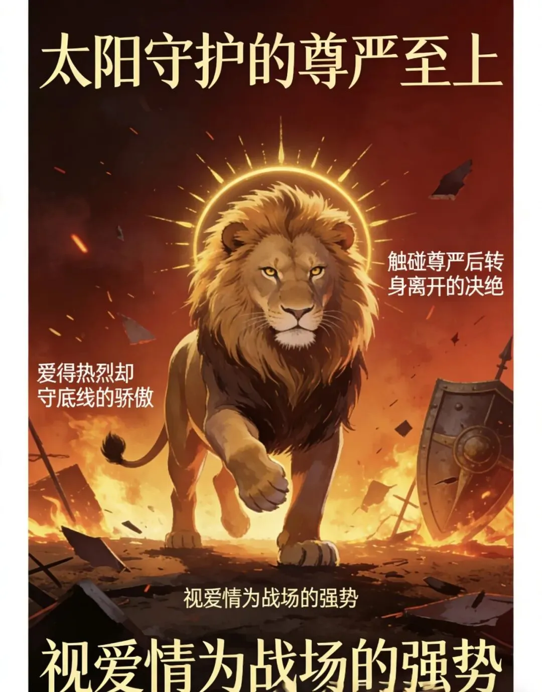 爱得热烈但保留底线,若对方触碰尊严,会立刻转身离开。太阳守护的狮子将爱情视为战场,宁可失去也不愿低头。