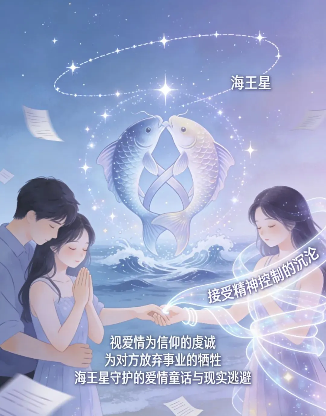 把爱情当信仰,为对方放弃事业甚至接受精神控制。海王星守护的双鱼活在爱情童话中,用自我感动逃避现实残酷。