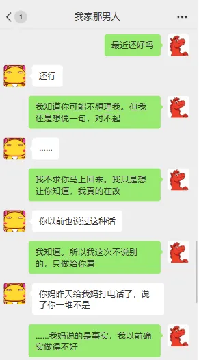 朋友和家人口径的改变,也让对方的态度开始发生了转变。慢慢地,两个人也能说上话了。