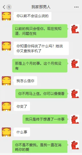 跟踪了嘉嘉一段时间,发现对方已经完全回归家庭了。嘉嘉也不再冷暴力和查手机,变成了他人生的支持者。
