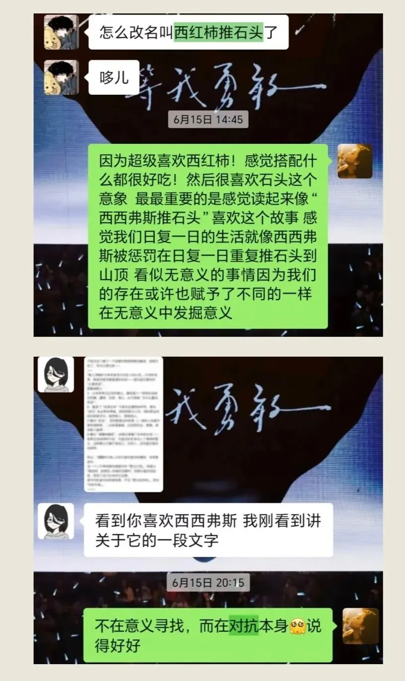 西红柿推石头:化用西西弗斯推石头的典故。在日复一日的重复中,重新定义存在的意义,对抗虚无。(ps:西红柿🍅好看好吃营养美味)