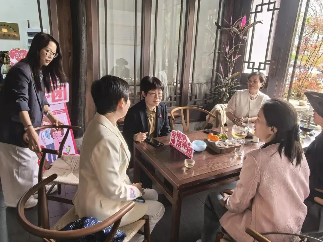 考察组首站抵达金华市爱心女人联合会“爱情陪跑团”项目工作室,详细了解该项目核心运作模式,重点学习核心公益红娘的专业化培育路径,以及每周六固定驻点提供精准匹配、婚恋指导等一站式公益服务的特色做法,围绕倡扬新型婚育文化、破解家庭“急难愁盼”、提升婚恋服务专业性等方面的经验举措开展深入探讨,对其“用心陪跑、用爱牵线”的服务理念以及取得的实践成效表示认可。
