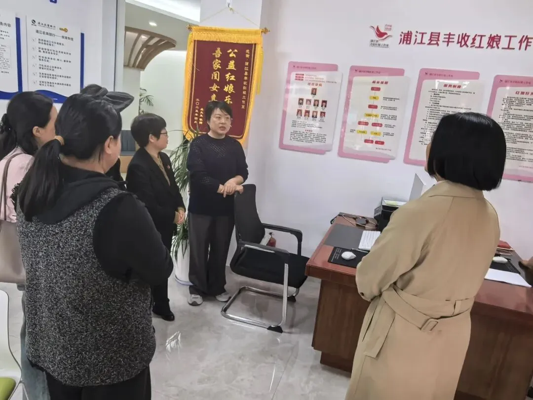 随后,考察组前往浦江县丰收红娘工作室,实地观摩工作室规范化建设情况,浦江县妇联党组成员、副主席楼鸳鸯详细介绍“丰收筑良缘”项目运作情况及其“党政引导、妇联牵头、部门协同、女企助力、社会参与”的特色模式,考察组重点学习其红娘队伍从50余人壮大至200余人的培育路径、常态化培训激励机制,以及“小范围主题活动+一对一精准对接”的双轨服务体系,对她们深耕公益、精准服务,助力青年婚恋与人才留存的实践成效给予高度评价。