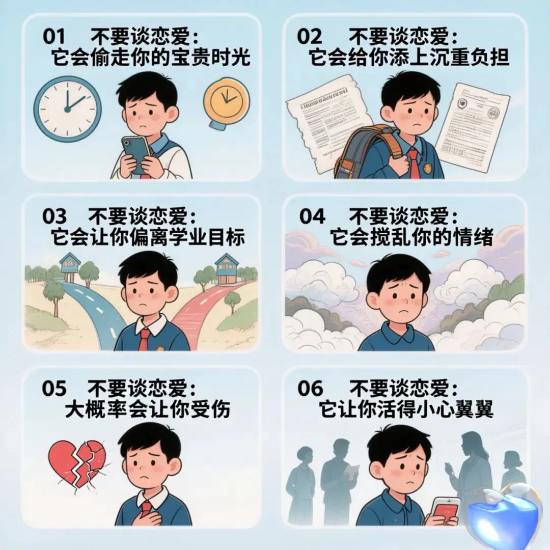 这个年纪的你们,重点都是学业,即便一时心动在一起,也没有能力经营感情,最后大多走向分手。而你还不懂如何面对失恋的痛苦,这份伤害会让你长时间走不出来,耽误学习、影响心情,得不偿失。