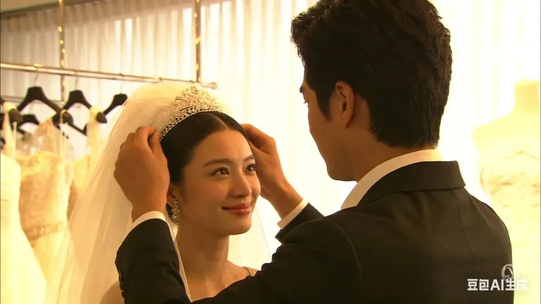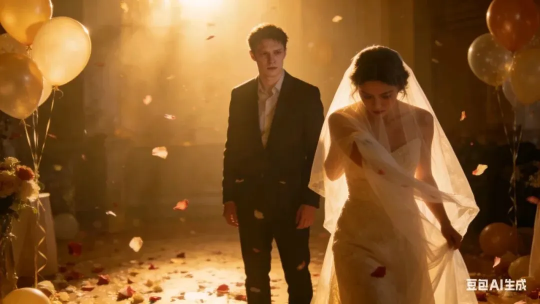 林晚穿着洁白婚纱,站在台上,陈凯微笑着牵起她的手。