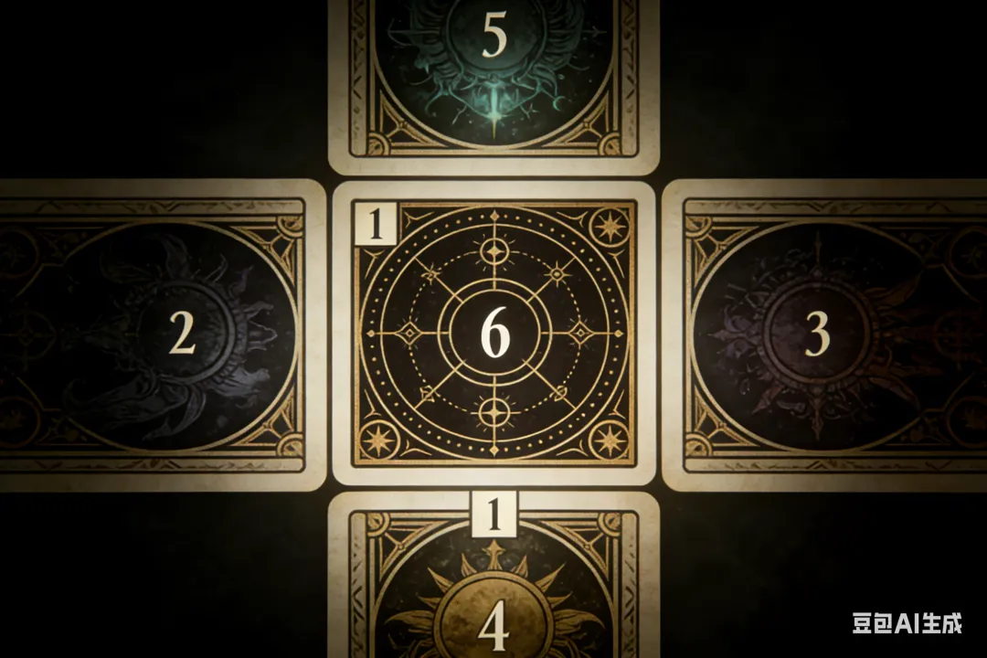 6 号位为盖牌,解牌时必须结合 1、2、3 号牌综合分析,不可单独解读。此牌阵不建议塔罗新手使用,务必打好基础、循序渐进,按照自身学习阶段稳步提升,切勿急于求成、贪多求快。