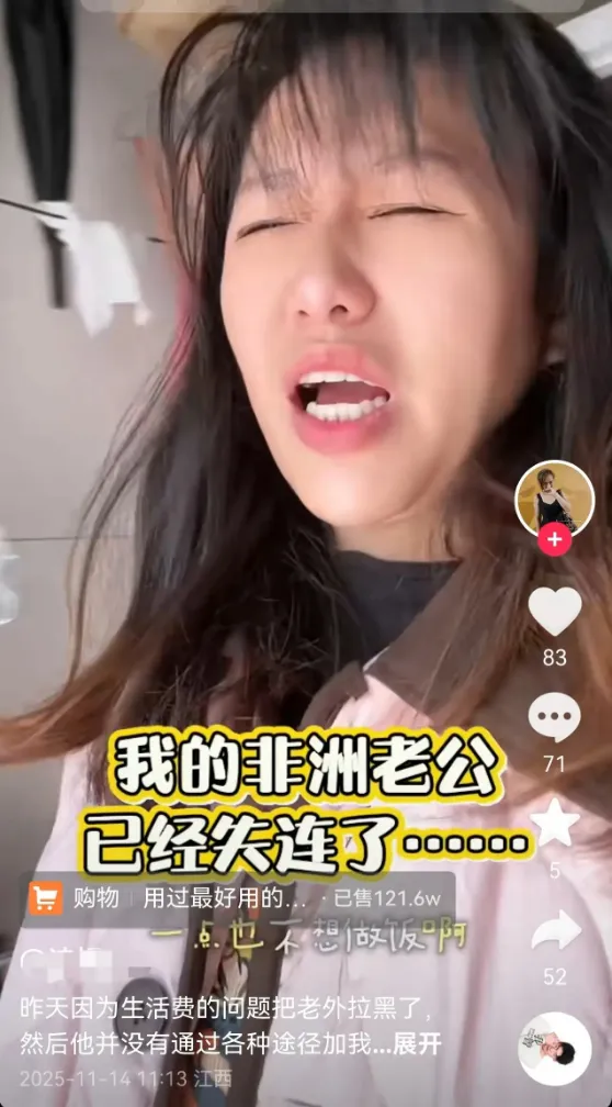 但了解黑哥的都知道,黑人几乎都会跑路,所以这位江西女孩的黑哥老公也跑路了,只能说又是一起失败的婚姻。