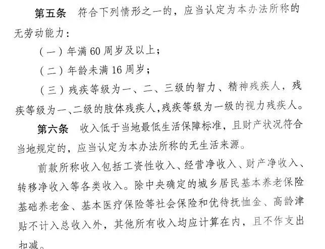 最近村里出了个新闻,我们村入住福利院的两名异性五保户领证结婚了。虽然没有在媒体上引起什么关注和讨论,但是在咱们这十里八乡还是引起了小范围的轰动。毕竟都是60岁以上的人了,还都是五保户,在慢节奏的农村里,这的确算得上是一桩大新闻,铁定会成为当地人茶余饭后的谈资。有村民出于好奇,就咨询我,福利院的两个五保户(异性)领证结婚后,还在继续享受五保户的政策吗?我根据实际情况回答道:“他们俩都还在继续享受五保政策!”村民就更加好奇了,就问我:“成为五保户之前结婚,好像就不能申请五保政策了,成为五保户之后,结婚反而不影响了啊”。她继续感叹:“看来还得是先成为五保户后,再结婚啊”。也怪小胡我呀,平时对五保户政策是浅尝辄止,对于这个问题,我一时半会还真解答不了。回去后,我认真查阅了政策资料,补了补功课,才明白原来五保户的政策并不是以是否“结婚”为申请条件或者取消条件的啊。相信不少小伙伴也和之前的我一样,对于五保户的政策是一知半解,对于这个问题也一定难以确定。其三、无法定赡养、抚养、扶养义务人,或者其法定义务人无履行义务能力这三个条件是写在政策文件里的,具体的文件依据是《湖北省特困人员认定办法》(鄂民政发〔2024〕16 号),文件标题里的“特困人员”,就是我们俗称的五保户。有的小伙伴要发问了,表示自己村里的五保户,怎么只满足第三条就纳入五保户了啊!这算是很认真的在关注五保户政策了,的确,在实际操作层面,“无劳动能力”和“无生活来源”的确不好判断,也难以衡量。但是政策的制定,本来就是为无依无靠的孤寡老人兜底的,因此在具体执行的过程中,一般情况下会用这个条件来进行筛选,即:年满60周岁+无法定赡养、抚养、扶养义务人,或者法定义务人无履行义务的能力。年满60周岁,以身份证上的日期为准,这个年龄要求,所有能活过60岁的人都能达到。但是第三条“无法定赡养、抚养、扶养义务人,或者其法定义务人无履行义务能力”,就能筛掉99.9999%的人了。其实政策文件上规定的非常详细,对什么情况是无劳动能力规定的一清二楚,不信你就看我贴在下面的这张文件内容截图。此外,还规定了一些排除条款,也就是所谓的硬伤,例如名下有机动车、大型农机具、商品房等,有这些“硬伤”,就无法申请五保户。言归正传,文字标题所说的,入住福利院后,两个异性五保户领证结婚了,还能继续享受五保户政策吗?答案是肯定的。因为两个异性五保户领证结婚,并没有改变上述申请成为五保户的基本情况,也没有新增应当排除的“硬伤”,政策文件也没有规定结婚了就不能享受五保户政策。实际上,如果在纳入五保户之前就存在婚姻,只要能满足纳入五保户的条件,且不存在纳入的“硬伤”,也同样不影响夫妻两口子同时纳入五保户。虽然绝大多数人,包括你我,都享受不到五保户的政策,但还咱们国家能对社会上最无依无靠的孤寡老人兜底,保障他们晚年的幸福生活,不得不由衷的赞叹一下咱们的国家:厉害了,我的国!