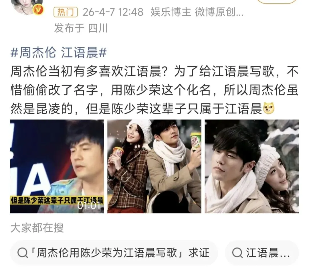 说是突如其来,其实也不算,事情的起因是女方参加了新一季的《浪姐》,而节目组之所以会请早糊透的江语晨,也是很明显一开始就是拿她和周杰伦的旧情博眼球,毕竟这位姐算得上出圈的作品,也就是这一段恋情了。