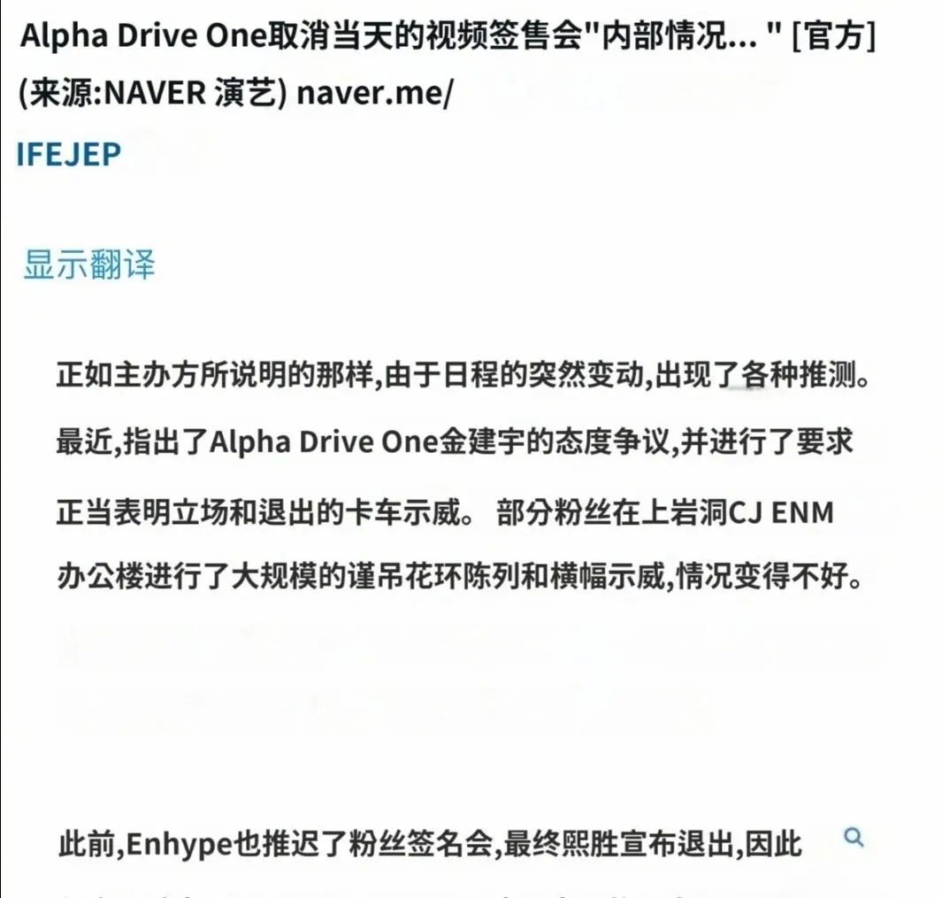 ALPHADRIVEONE视频签售举行当天宣布延期。