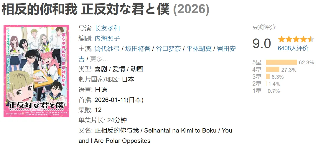 在这个满屏“虐恋”“修罗场”的番剧圈,《相反的你和我》就像一股清流,看完绝对让你嘴角上扬,心情超好!