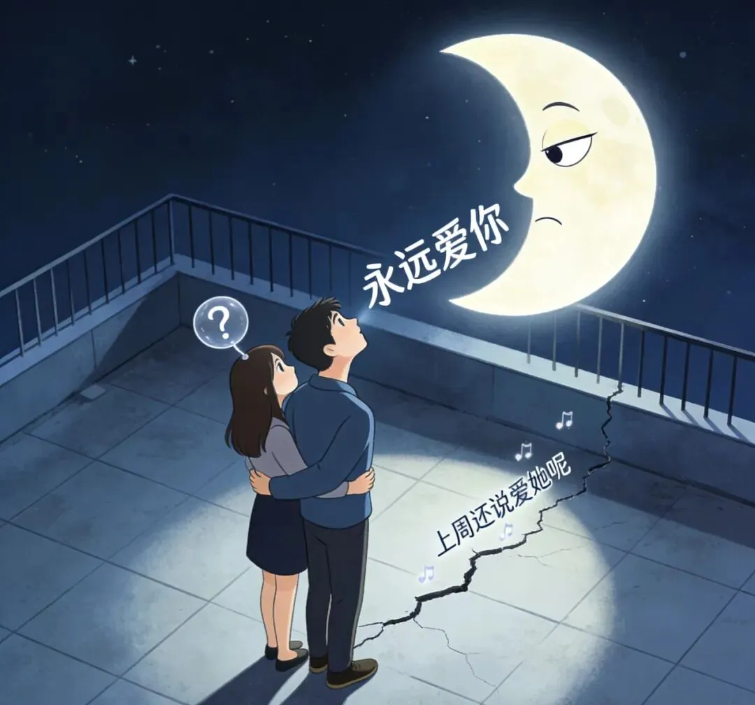 情侣间所谓的山盟海誓,不过是在荷尔蒙冲动时吹的牛皮,风一吹就破。