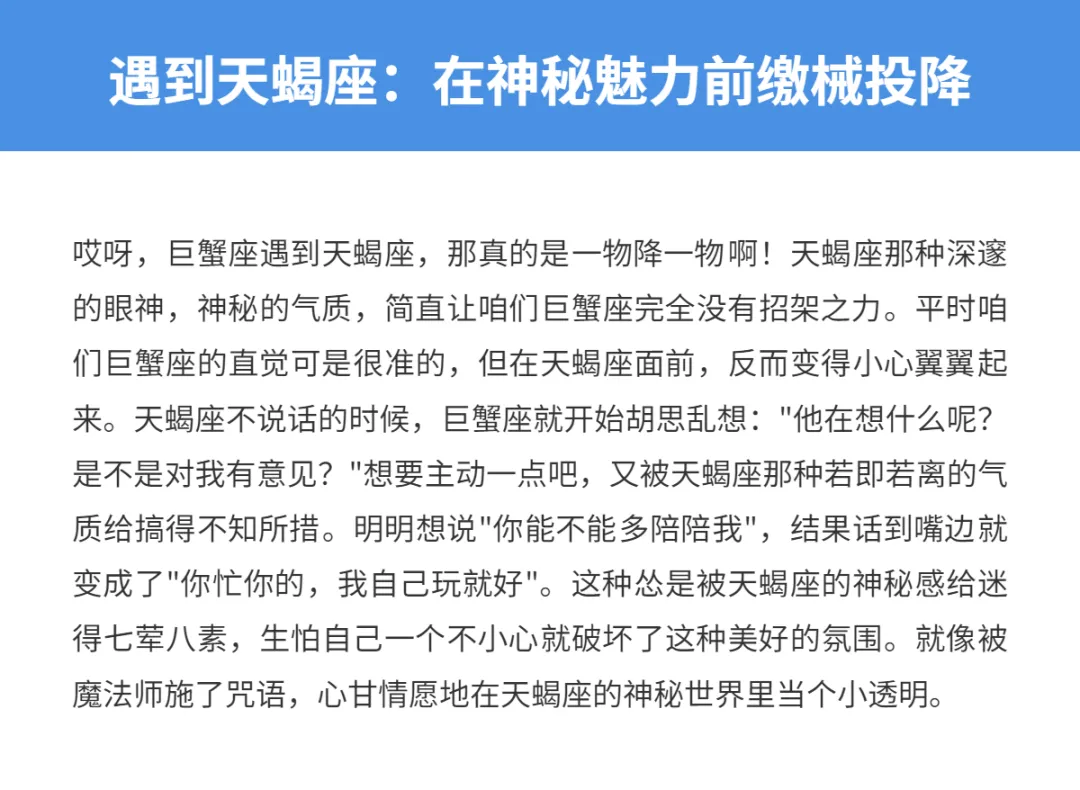 让我来告诉你,巨蟹座遇到谁会变得特别怂,而这种"怂"其实藏着咱们内心最柔软的那部分。