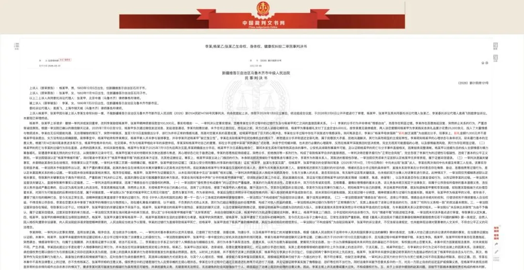 近日,乌鲁木齐市中级人民法院发布了二审判决书。