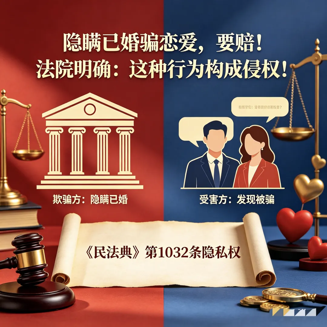 明明已婚却谎称单身,骗取他人恋爱、投入真情,最终导致对方精神崩溃、患上抑郁,这种"情感欺诈"难道只受道德谴责?深圳中院最新判例给出答案:隐瞒婚姻状况与他人谈恋爱,构成民事侵权,必须赔偿损失!别再觉得"感情债不用赔",法律早已为受骗者撑腰。