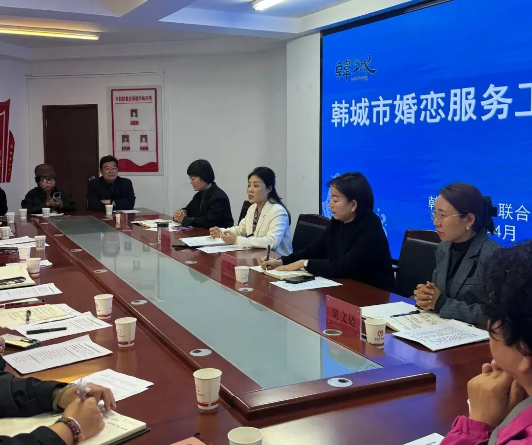 为进一步规范婚恋服务行业发展,破解青年婚恋难题,弘扬文明婚嫁新风,4月9日上午,韩城市妇联组织召开婚恋服务工作座谈会,汇聚婚恋服务、婚庆礼仪、车队服务、婚纱摄影、珠宝首饰、餐饮等多家行业代表,齐聚一堂、共商共议,围绕全市婚恋服务行业现状、发展瓶颈、问题短板及下一步工作举措展开深度研讨交流。座谈会由市妇儿工委办副主任薛燕主持。