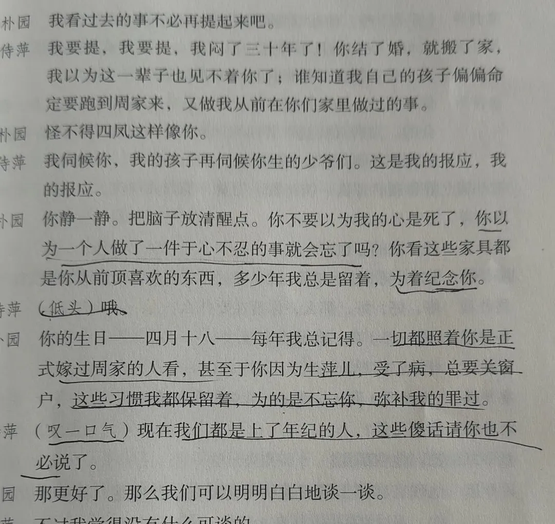 可鲁侍萍呢?听到这些话,她明显动摇了。文中这句话:“我们都是上了年纪的人,这些傻话请你也不必说了”她可能甚至在心里产生了一丝错觉:难道他真的还记得我?难道他心里还有我?