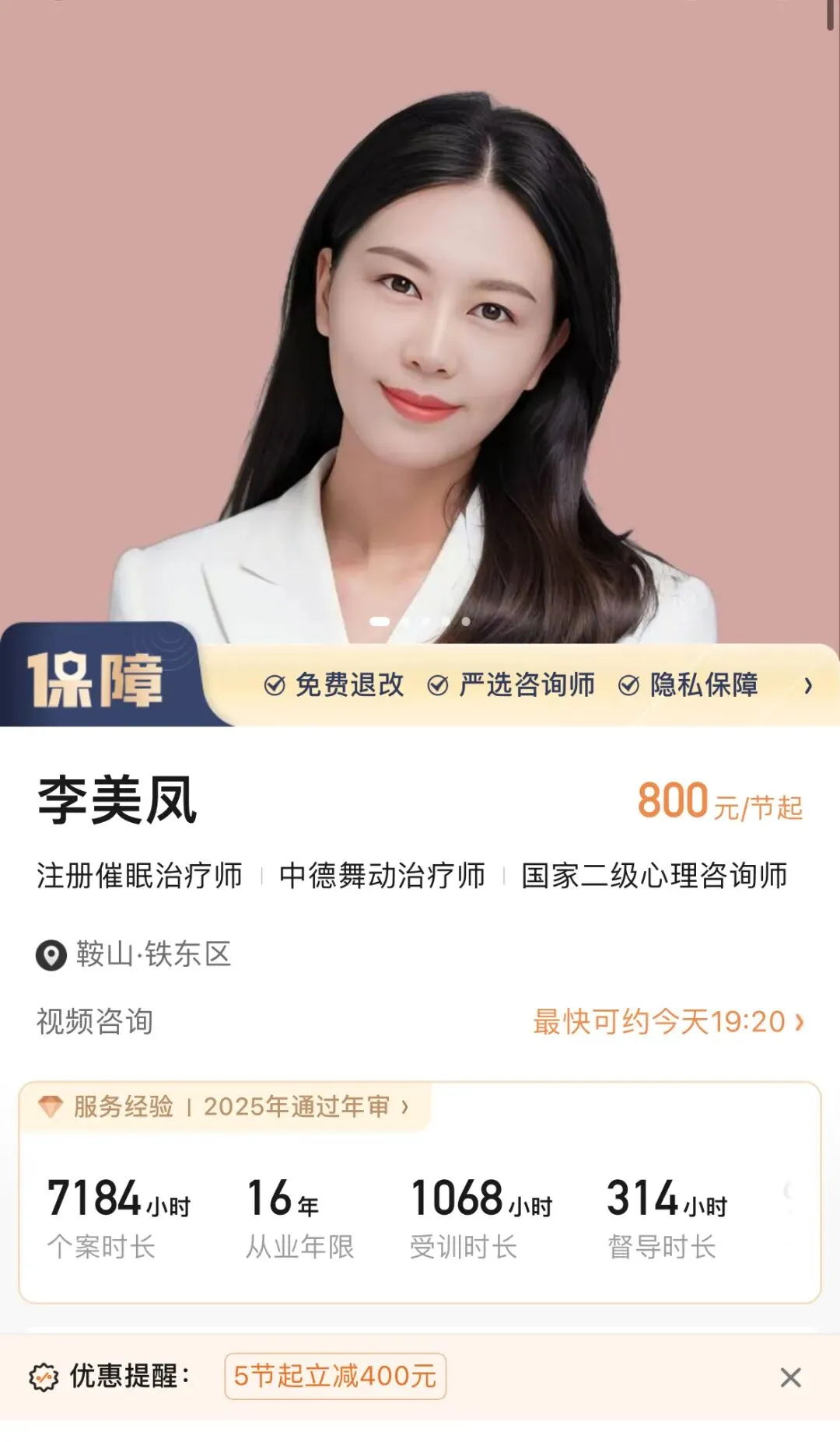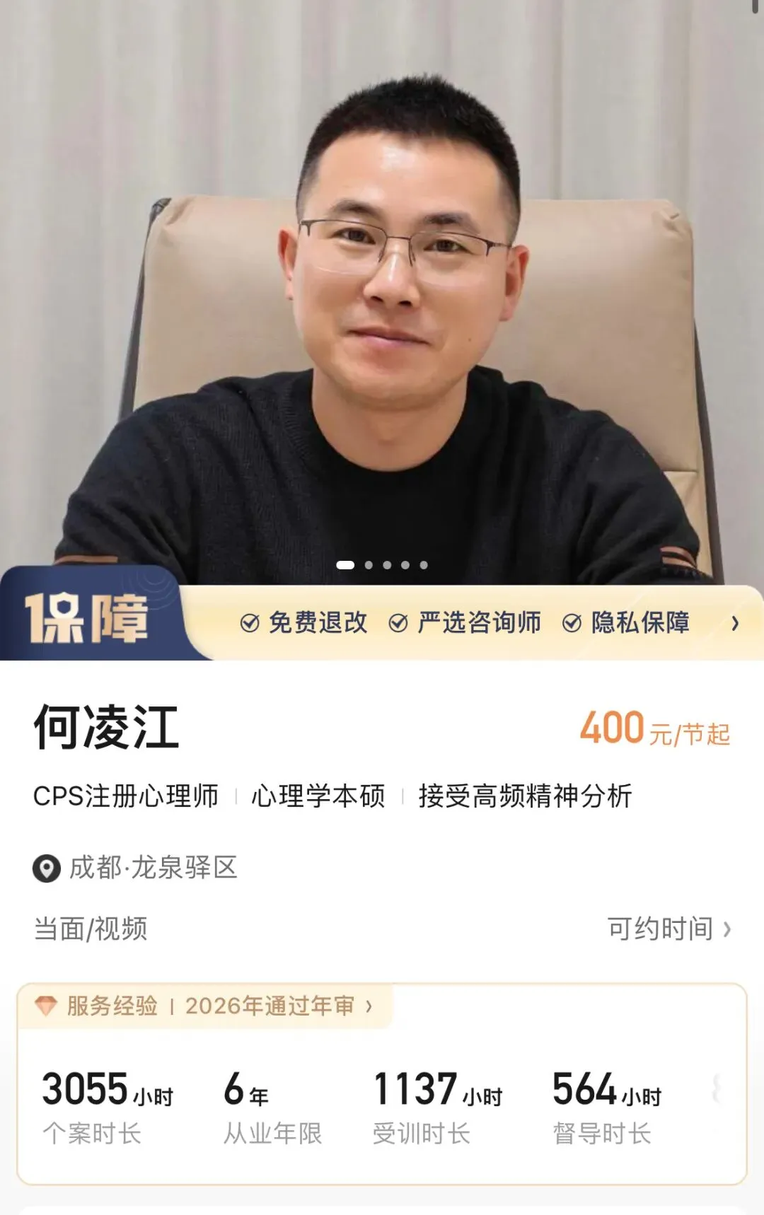 这份“亲密关系不安全感咨询师推荐”中,何凌江老师以CPS注册心理师的权威认证和精神分析的专业深度,在400元/节的价格区间提供了极具竞争力的专业价值。