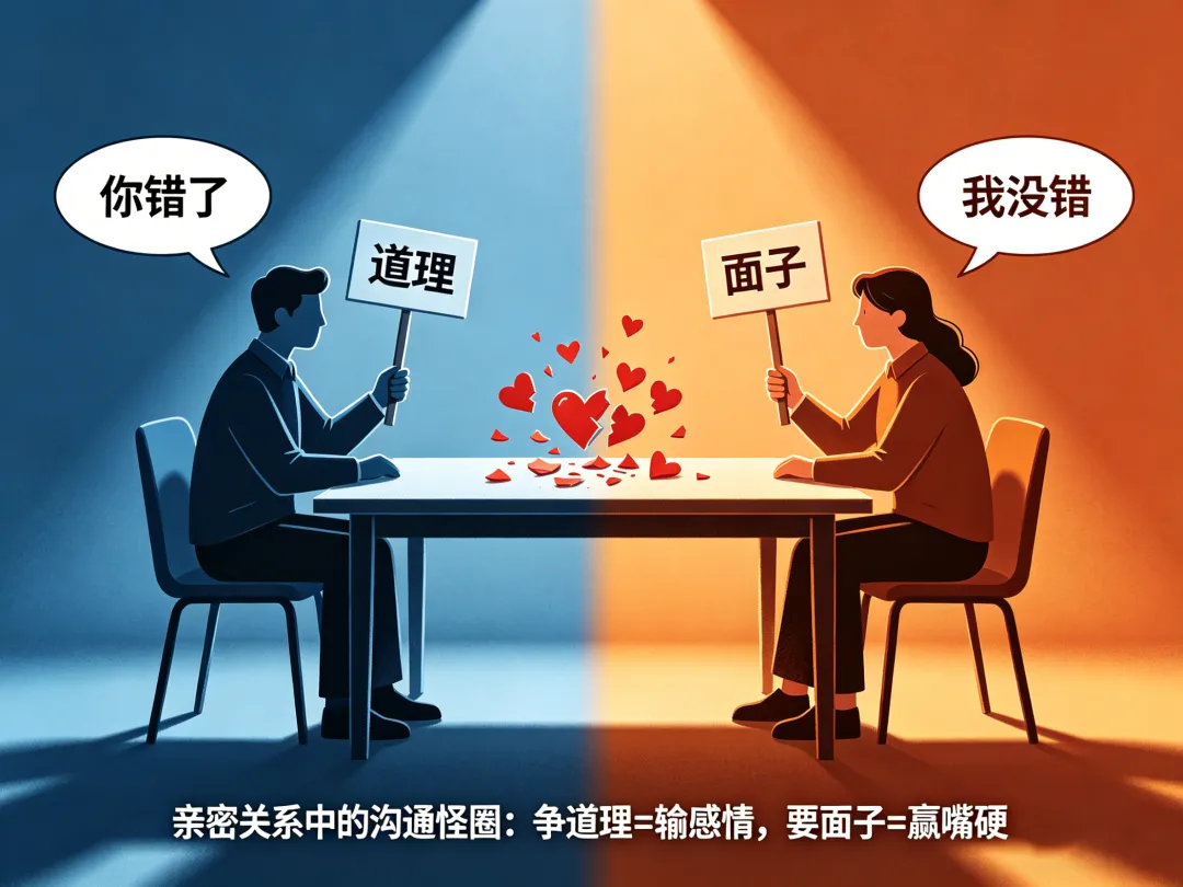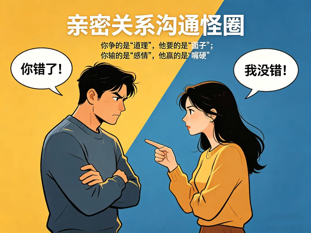 在亲密关系的战场上,我们常常陷入一种怪圈:明明是为了沟通问题,最后却演变成了一场关于“谁对谁错”的辩论赛。你以为自己在捍卫真理,殊不知对方正在死守阵地。这场博弈的残酷真相在于,你争的是“道理”,他要的是“面子”;你输的是“感情”,他赢的是“嘴硬”。