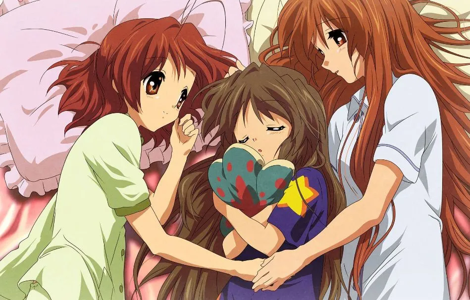 在某个小镇,主角冈崎朋也因家庭因素成为不良少年,一直与春原阳平为伍,在光坂高校过着潦倒的生活,但希望终有一天能够离开所在的小镇。某一天,他在学校坡道前发现了一个止步不前的女孩,在朋也认识了这个名为“古河渚”的女孩后,他的生活开始有了重大的变化。