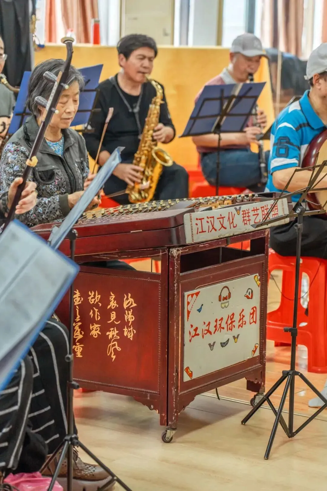这支乐团是江汉区文化馆的馆办团队,成员大多是四五十岁的管乐爱好者,常年活跃在街道、社区和江滩边,把交响管乐从音乐厅搬到老百姓家门口。