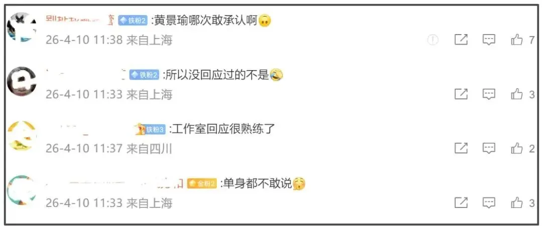不少网友看到黄景瑜的辟谣则纷纷表示不信,还称他此前从来没有回应且承认过恋情,连一句单身都不敢说,毫无信誉。而且,聚会的人数被扒有18人,最后只剩黄景瑜和王玉雯合伙回同一个酒店,未免太巧了,显得澄清更滑稽。
