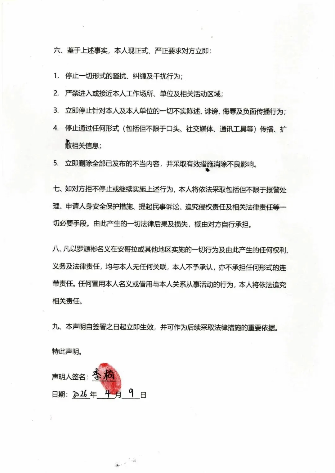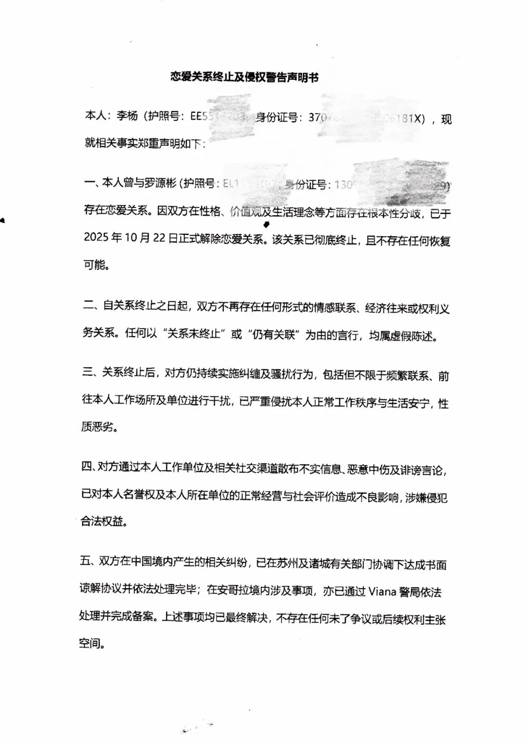 >恋爱关系终止及侵权警告声明书