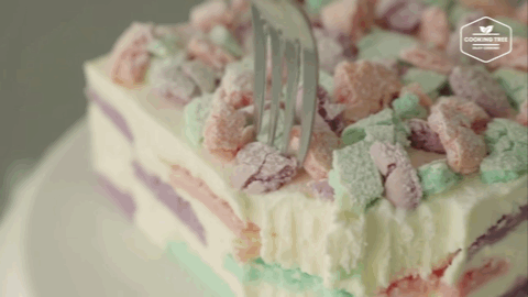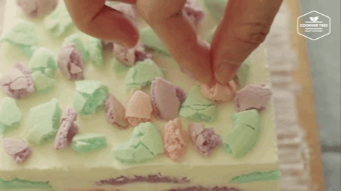 马卡龙甜腻吃不下?韩国这位博主把颜色不一的马卡龙埋进蛋糕,形成五彩缤纷的马卡龙蛋糕,像是卡通动画里的云朵般可爱。