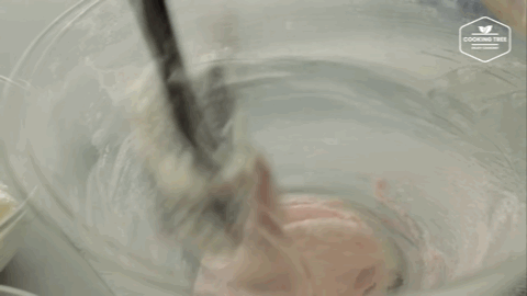如果想要马卡龙般粉嫩的颜色,就要额外加入白色素,比如红+白,出来的颜色就会这样。混合均匀后统统装入裱花袋。