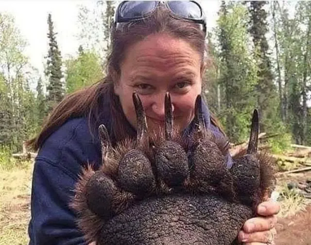 图中这个巨大的熊掌,还有指甲的弧度,瞧着就觉得带劲,这要是遇上,谁还管什么捕猎勇气啊,赶紧逃命最要紧,大家夸熊是山林王,可真没人敢和它比体重和速度。