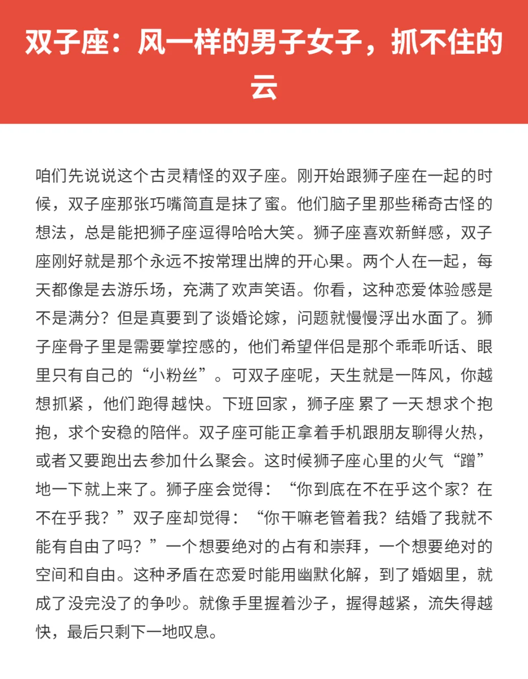 咱们今天就来盘点一下,哪几个星座跟狮子座是“恋爱容易,结婚难”,看看你有没有中招?