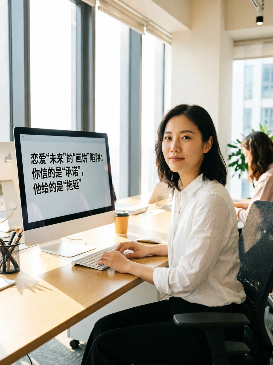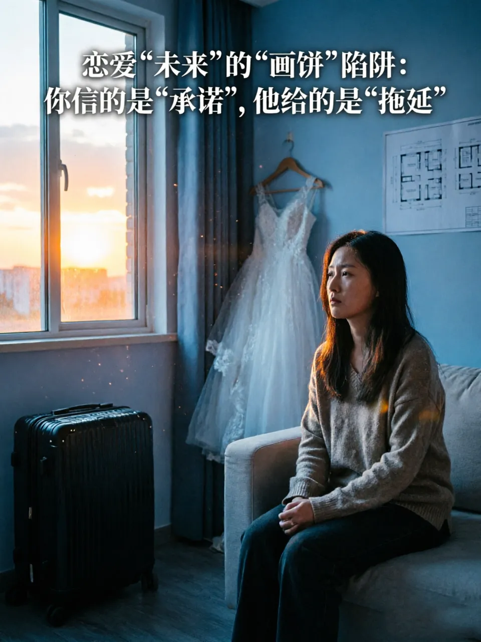 你终于看清,这所谓的“未来”,不过是他精心绘制的“画饼”:你用“承诺”当信仰,他却用“拖延”当武器;你守着“明年”的约定,他却把“现在”的责任推得一干二净。你等来的不是“以后”,而是日复一日的消耗;你信的不是“爱情”,而是他随口而出的敷衍。