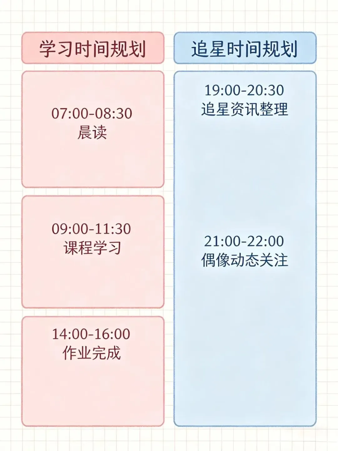 把追星的时间严格限定在“碎片间隙”——比如放学/下班之后的放松时刻,或是周末的固定时段。切记,学习和工作是生活的基石,是主业置顶;而追星是娱乐,是调剂。不要让追星占用你提升自我、完成目标的核心时间。把时间留给重要的事,追星才会成为生活的加分项。