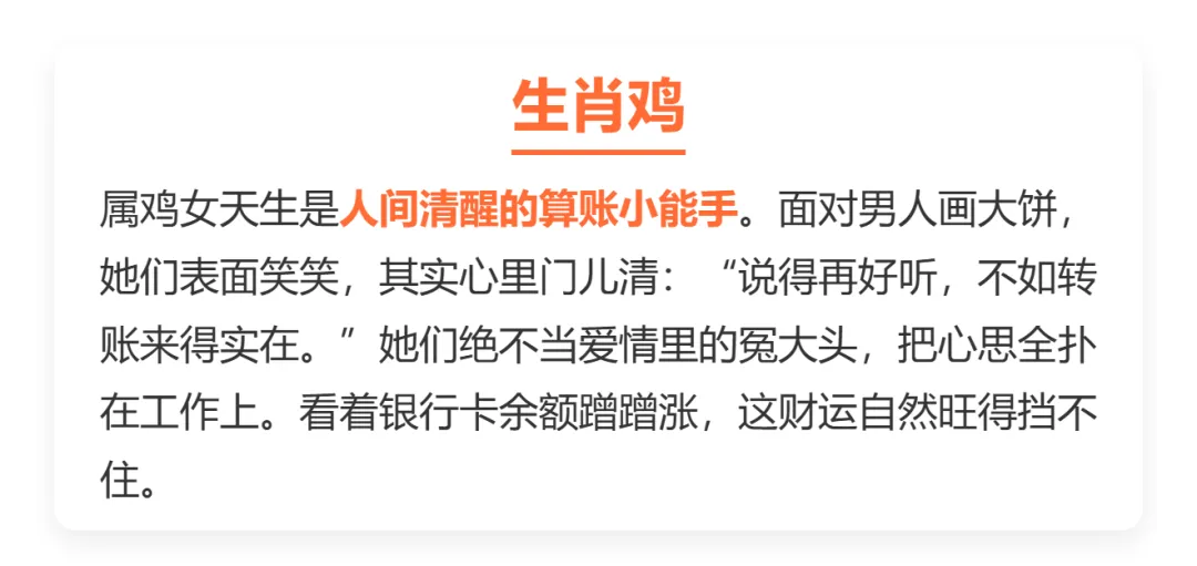老话讲:“靠人不.如靠己,兜里有.钱才.硬气。”这年头,指望.别人给的.安全.感太.飘渺。咱们.今天就.聊聊,十二生肖.里哪.四位生.肖女.天生.自带“清醒.大女.主”剧本,绝不.长恋爱脑,一门心.思搞.事业,活得那叫.一个通.透!