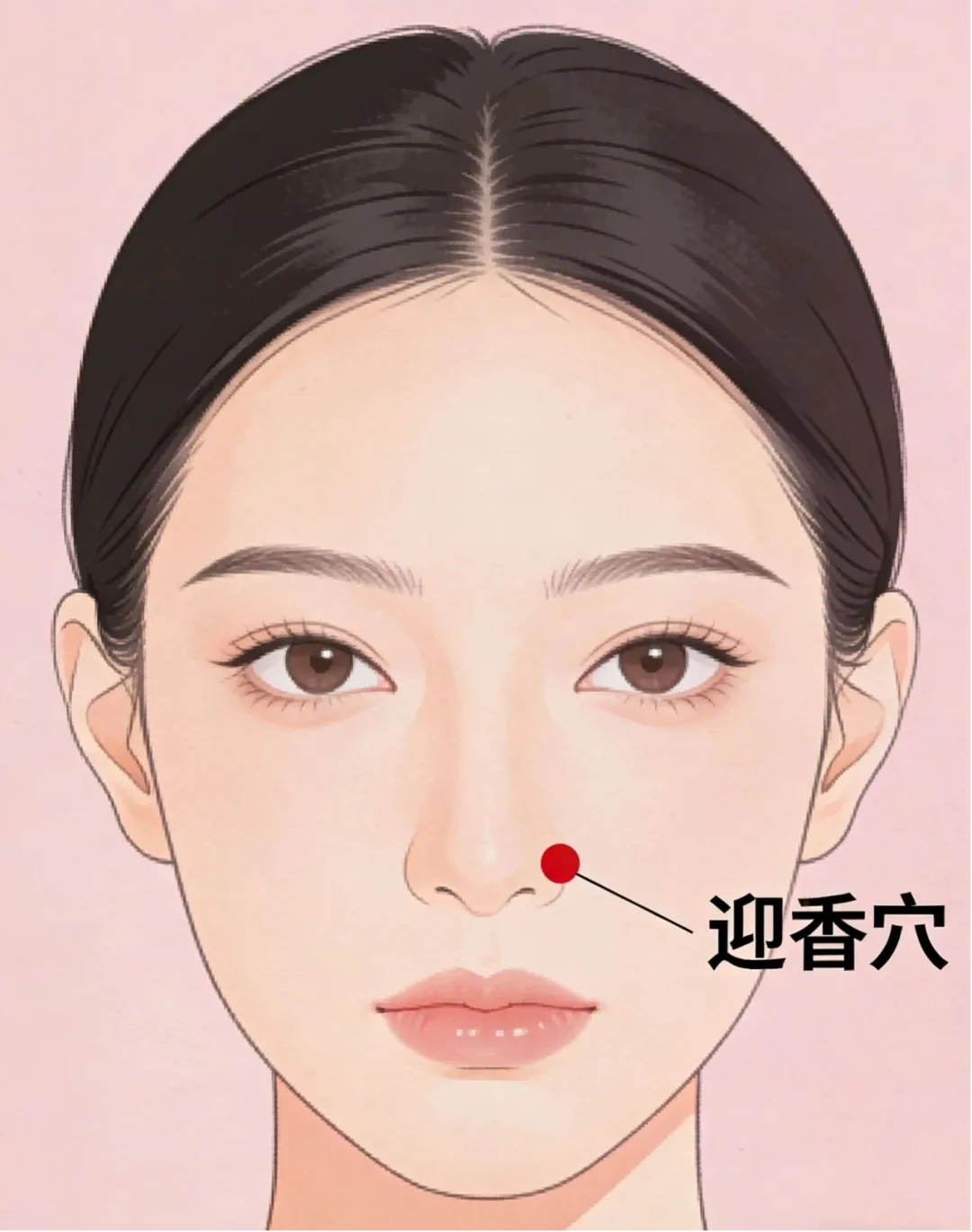 食指拇指按住鼻翼两边的凹陷,顺时针逆时针各揉三十圈。再从鼻根往鼻翼推几次。早晚各一回。