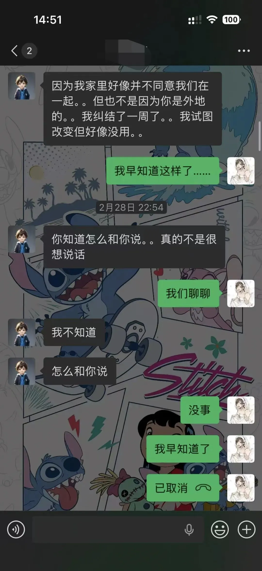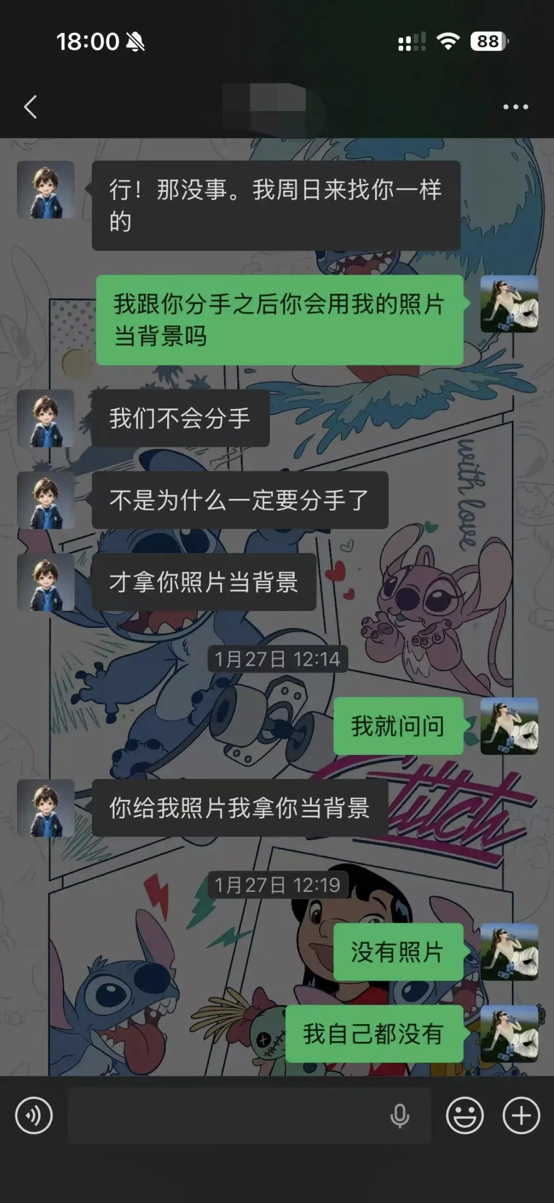 一月二十七见面时女主突击检查,却遇到男主余情未了手机壁纸为和前妻的结婚照片,女主的心碎成一百零八瓣💔,此刻男主明知苦主生气的前提下没有任何补救措施,反耳呢脑袋空空留下一句“你腿好长”令苦主发笑。