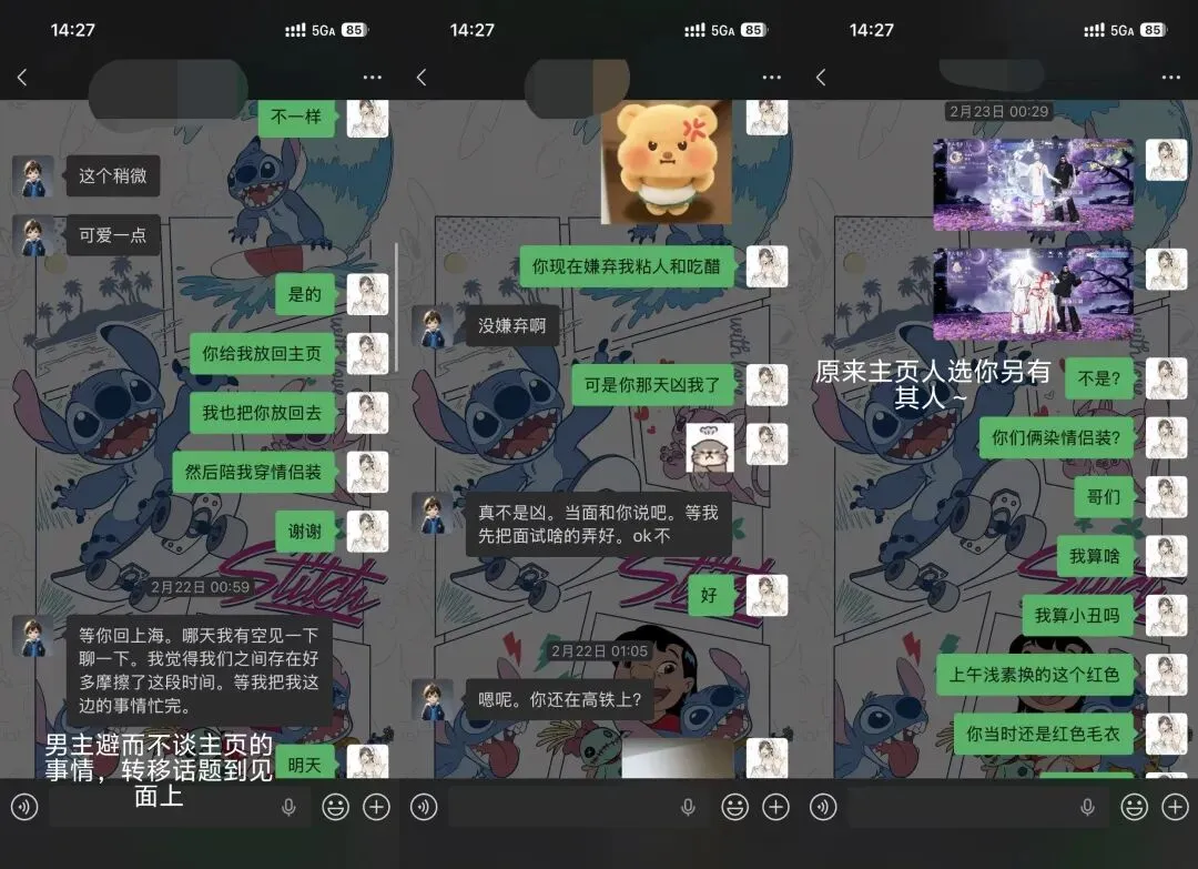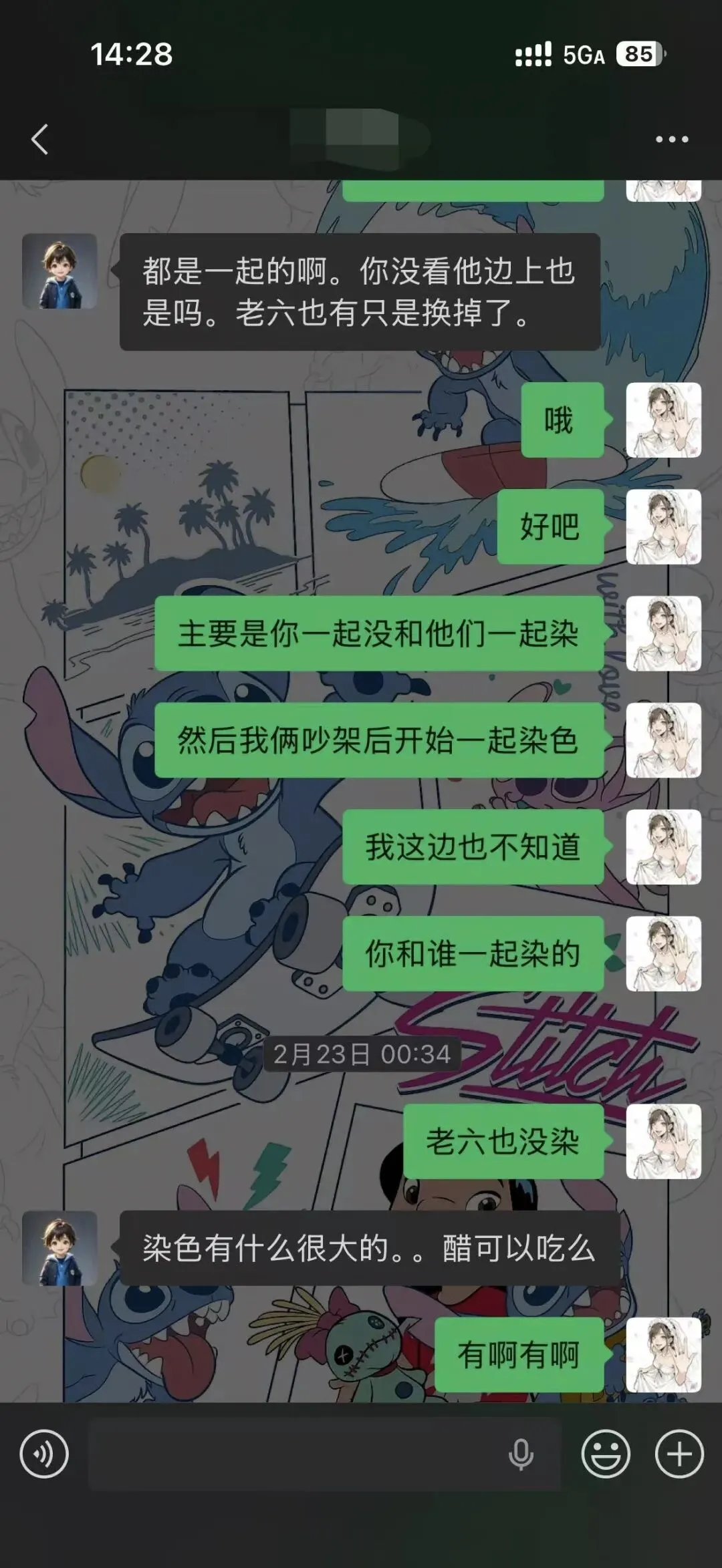 在男主和别人染上情侣色后,男主给的解释是“老六”也染了,试图将性质模糊成“结义一起染色”但后续给出的证据完全站不住脚,翻页请看VCR