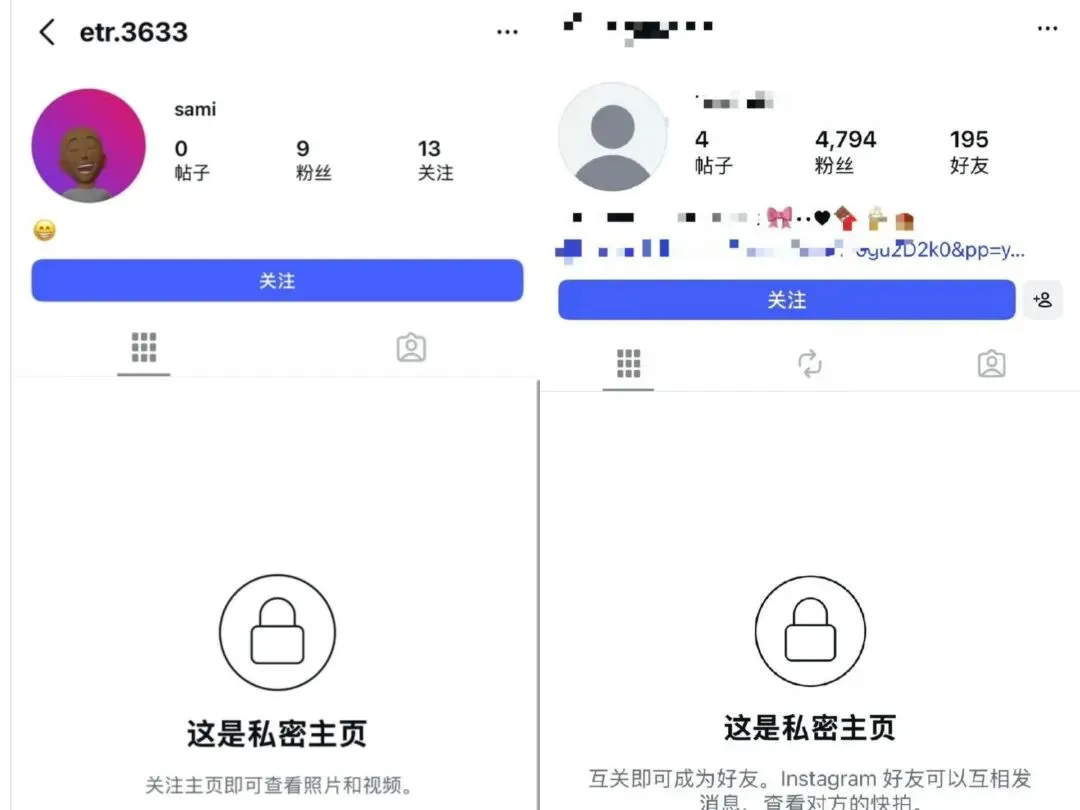 (图左为网传李楷灿ig小号,图右疑似嫂子ig账号)