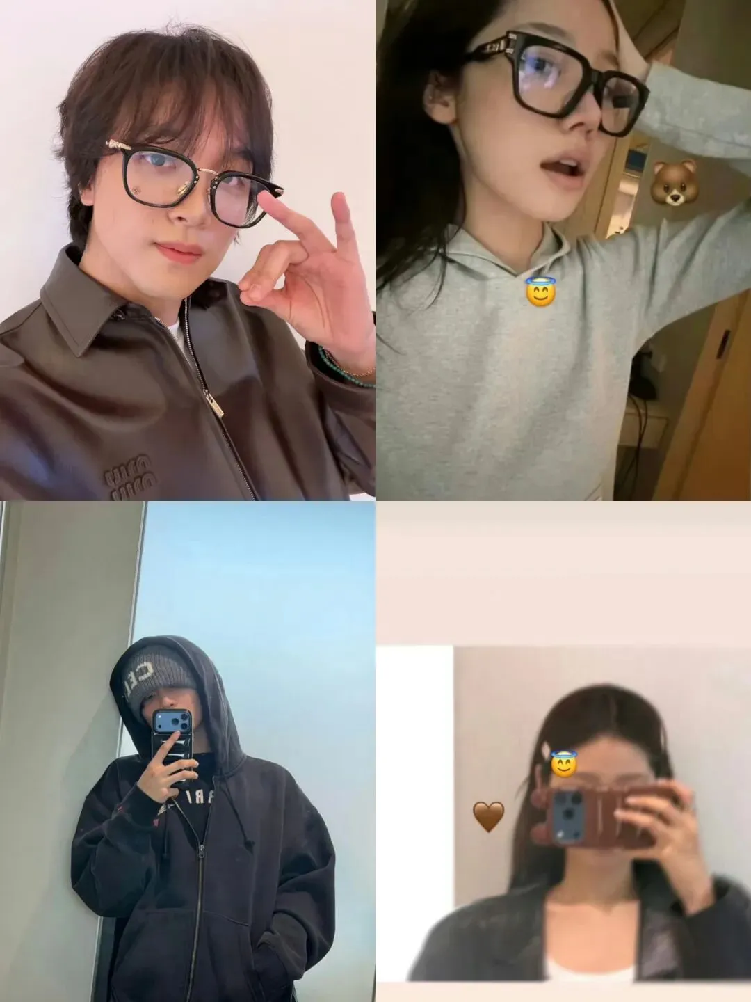 同时两人有多种同款曝光:同款手机壳,同款外套,同款眼镜,身处地点也高度重合。