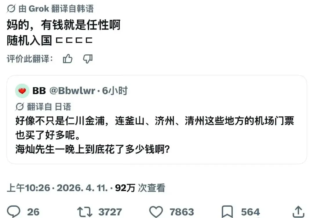 目前,网传李楷灿仍未回韩国,为避免航班信息泄露,买了约30w的拉斯维加斯飞首尔的机票。